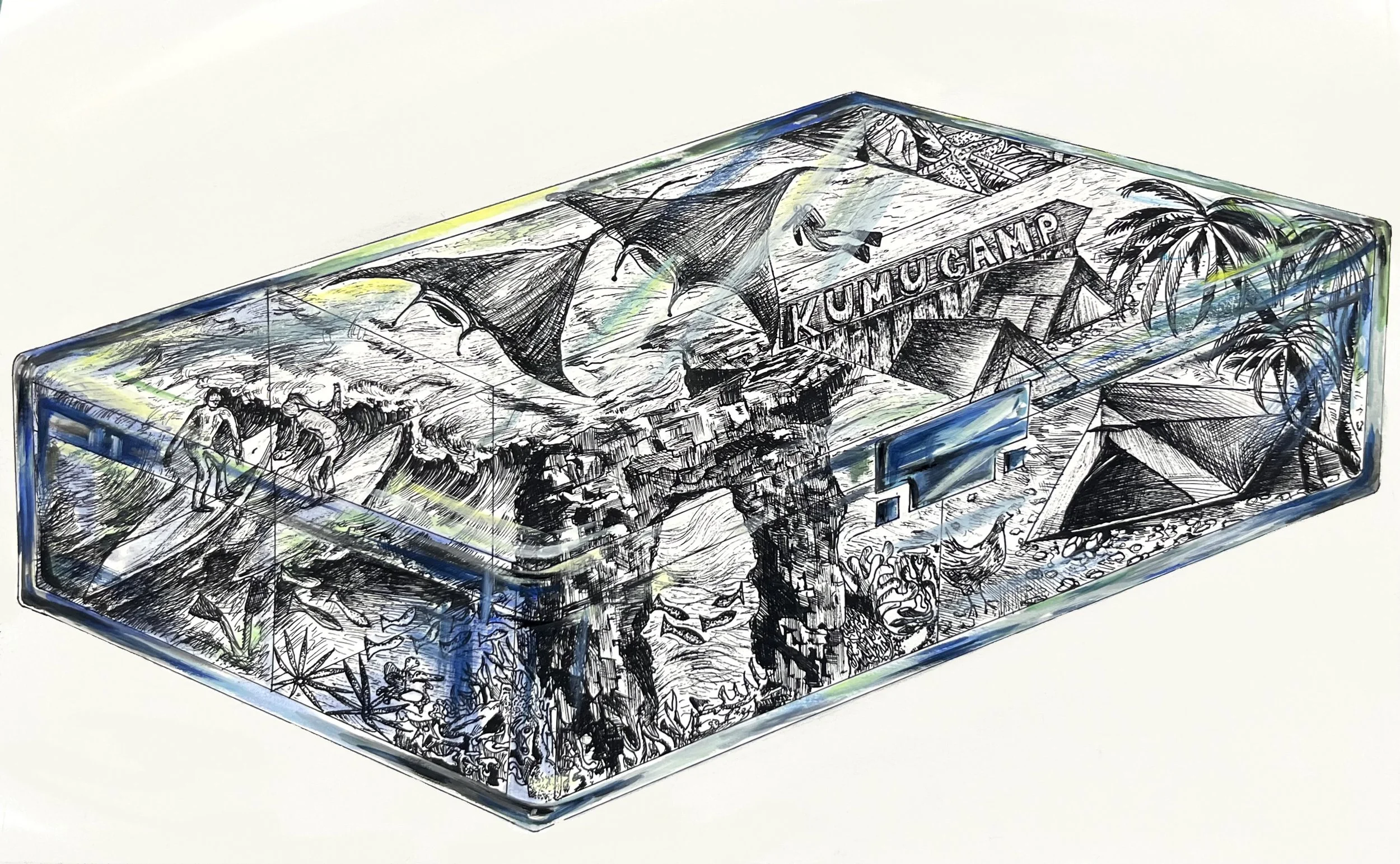 Project 3: Drawings My sophomore summer, I went on a Three week Hawaiian Islands camping trip. I wanted to capture the various activities and memories I made into a “summer box”.